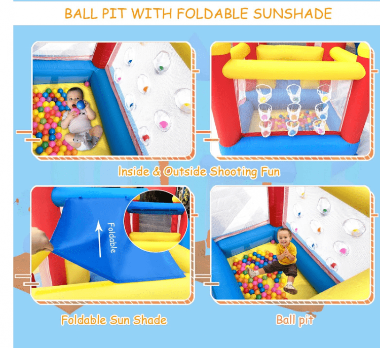 - OCCUPANCY: A maximum of 5-6 kids of equal size at one time for bounce houses, and 1 person at a time for slides is what most inflatable manufacturers recommend.